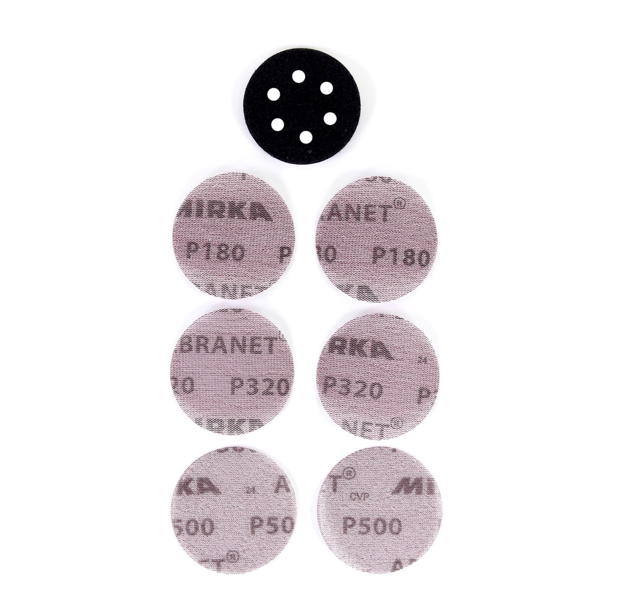 Mirka DEROS 325CV 77mm Ponceuse excentrique Hub 2,5mm 250W Brushless ( MID3252011 ) + 6x Meules ABRANET