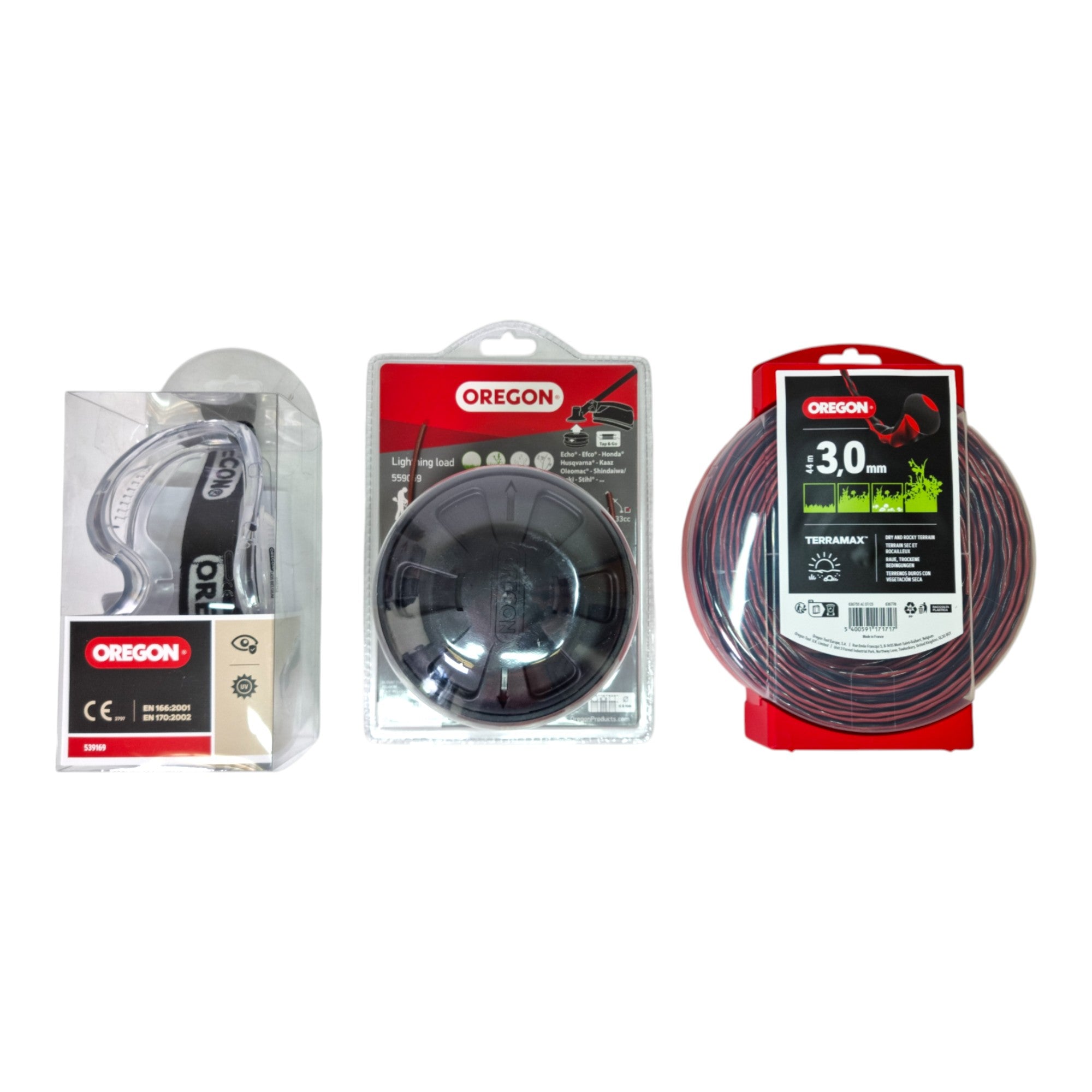 Oregon Pro Garten Set tête de fil + fil + lunettes de protection ( 646569 ) pour débroussailleuse à partir de 33 cm³.