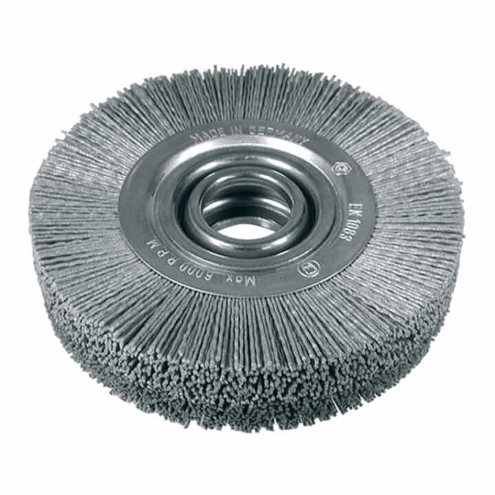 Brosse plate de 150, de 178 et de 200 mm de Ø avec des pièces de réduction d’alésage des tailles 13, 15, 16, 19, 20 mm, 7/8″, 1″