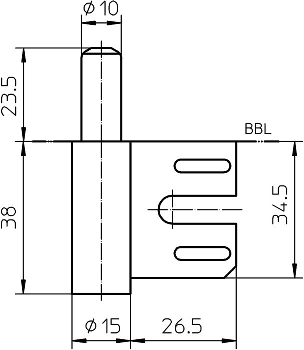 pour portes à feuillure et sans feuillure sur huisserie en acier avec poche arrière à souder Variant V 8600 / V 8610 - longueur du rouleau 38 mm - Ø du rouleau 15 mm - Ø de la tige 10 mm