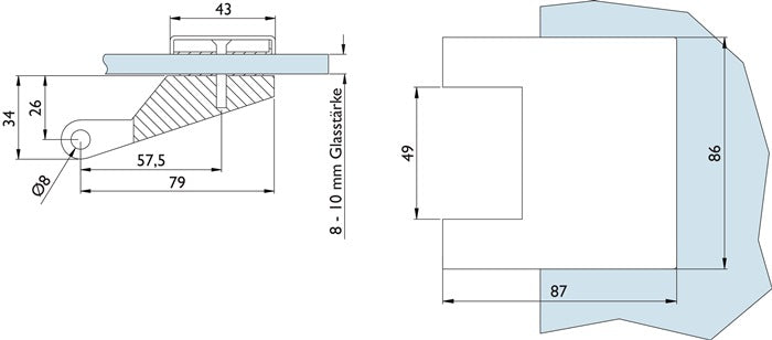 - 1x HERMAT paumelle pour porte en verre métal léger couleur inox