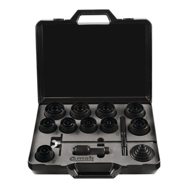 2 crochets 1 poinçon intérieur dans les tailles 3 / 4 / 6 / 8 / 10 mm 1 poinçon extérieur dans les tailles 12 / 14 / 16 / 18 / 20 / 22 / 24 / 26 / 28 / 30 / 30 / 32 / 34 / 36 / 38 / 40 / 42 / 44 / 46 / 48 / 50 / 52 / 54 / 56 / 58 / 60 mm 1 découpeur circulaire