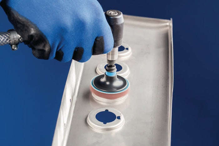 - Recommandation d'utilisation : la tige du support de feuilles abrasives peut être remplacée par des adaptateurs correspondants. Le support de pastilles abrasives peut ainsi être fixé directement sur la broche d'entraînement de l'entraînement de l'outil.