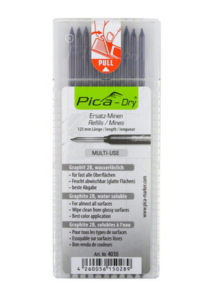 Pica DRY Mines de rechange colorées en graphite - hydrosoluble et multi-usage, 10 Pcs. ( 4030 )