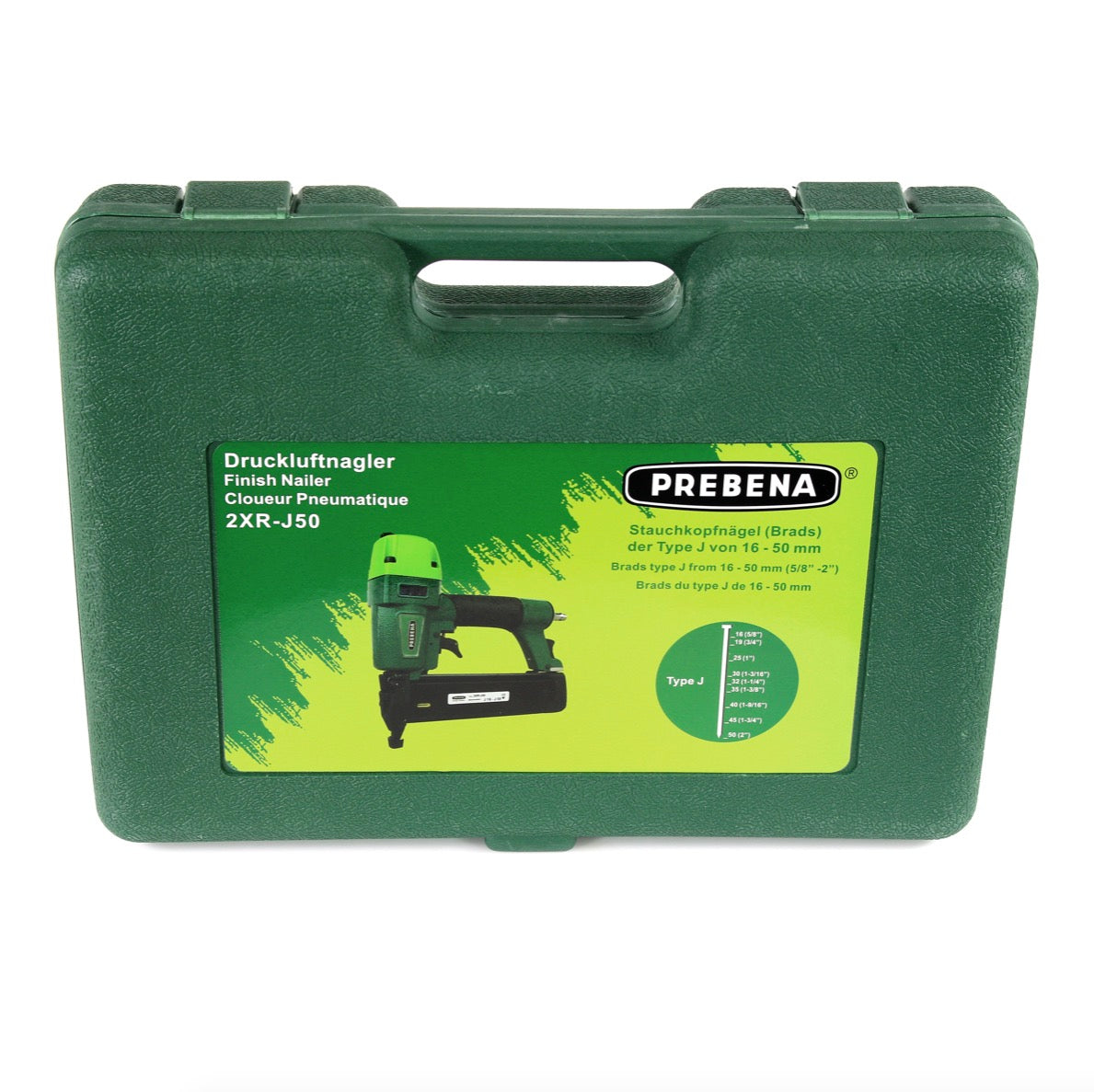 Prebena 2XR-J50 Cloueur pneumatique en mallette de transport + J-BOX 8.000 clous à tête refoulée/ Brads
