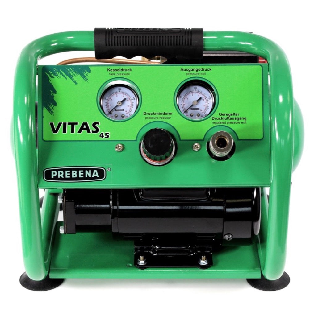 Prebena 2XR-J50 Cloueur pneumatique pour pointes avec Coffret de transport + Tuyau d'air comprimé 10 m + Compresseur VITAS 45 + Agrafes J-BOX 8.000