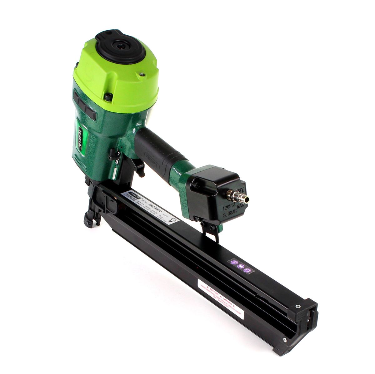 Il est souvent utilisé pour les lattes de toit, la construction de cadres, les sous-structures, la construction de maisons préfabriquées, les fermes en bois, les boîtes, les palettes, la construction de cadres en bois, la construction de clôtures, les cabanes de jardin et bien plus encore. On utilise des clous en bande à tête ronde du type RK de 50 à 90 mm avec un fil de 2,8 à 3,1 mm. Sa consommation d'air est de 2,0 l/clouage et sa pression de travail se situe entre 4 et 7 bars.