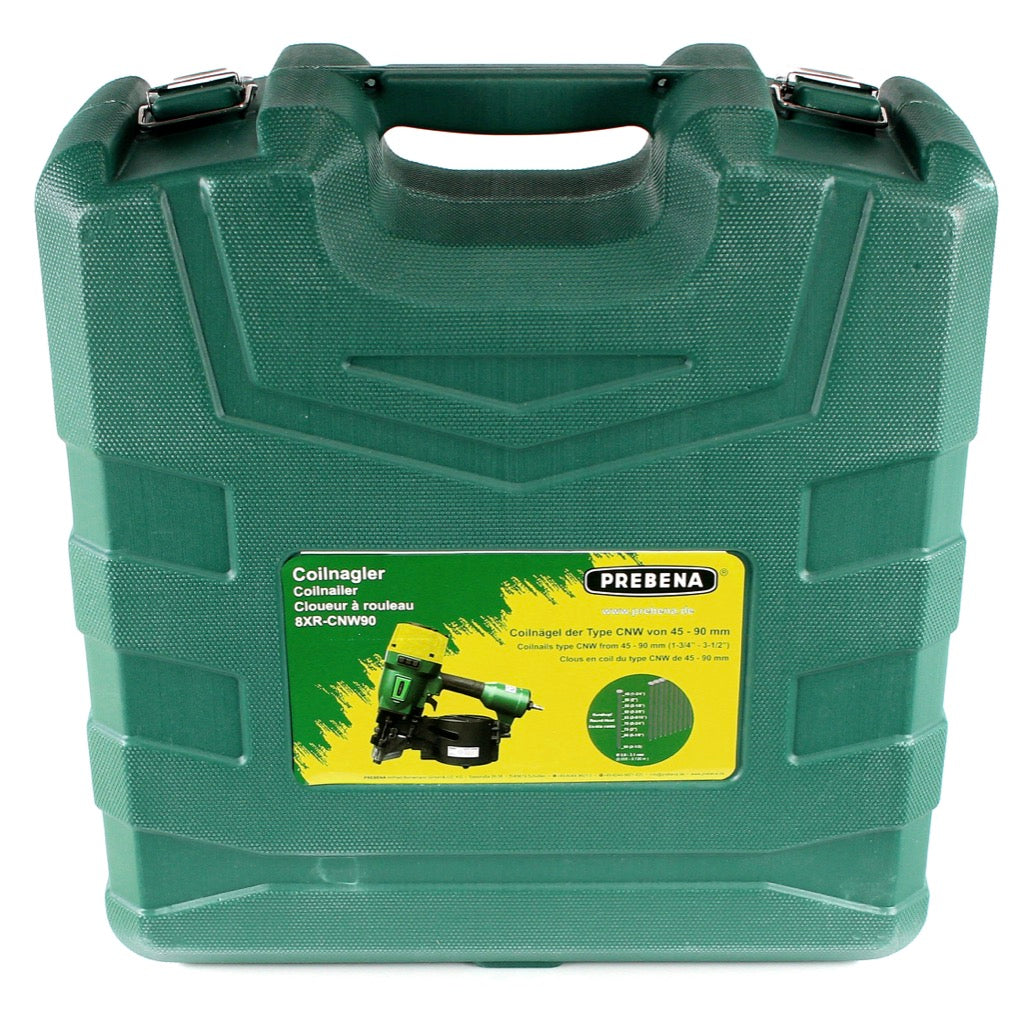 Prebena 8XR-CNW90 Cloueur pneumatique + Coffret + Clou en rouleau Prebena CNW25/65BKRI tige annulaire, 7200 pcs.