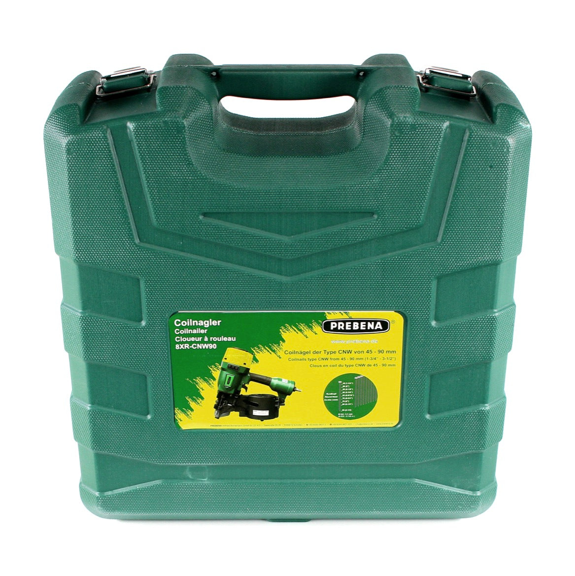 Prebena 8XR-CNW90 Cloueuse pneumatique et Agrafeuse pour clous à tôle + Coffret de transport + 10800 Pointes annelées en rouleau