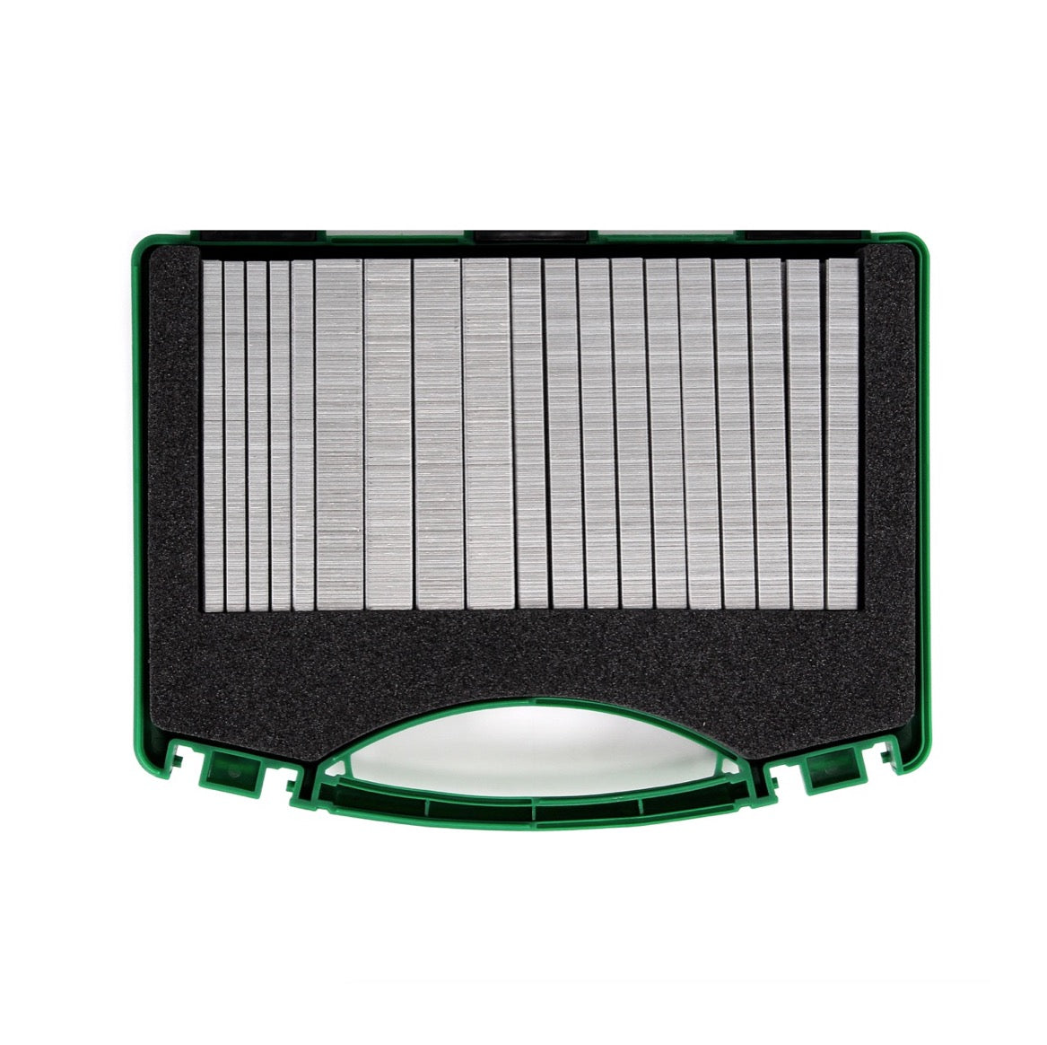 Les Agrafes Prebena PF-BOX contient un total de 9 000 agrafes galvanisées de 3 tailles différentes, adaptées à l'agrafeuse pneumatique Prebena DNPF16. Les agrafes sont livrées dans une boîte A-box pratique. Fabriqué en Allemagne.