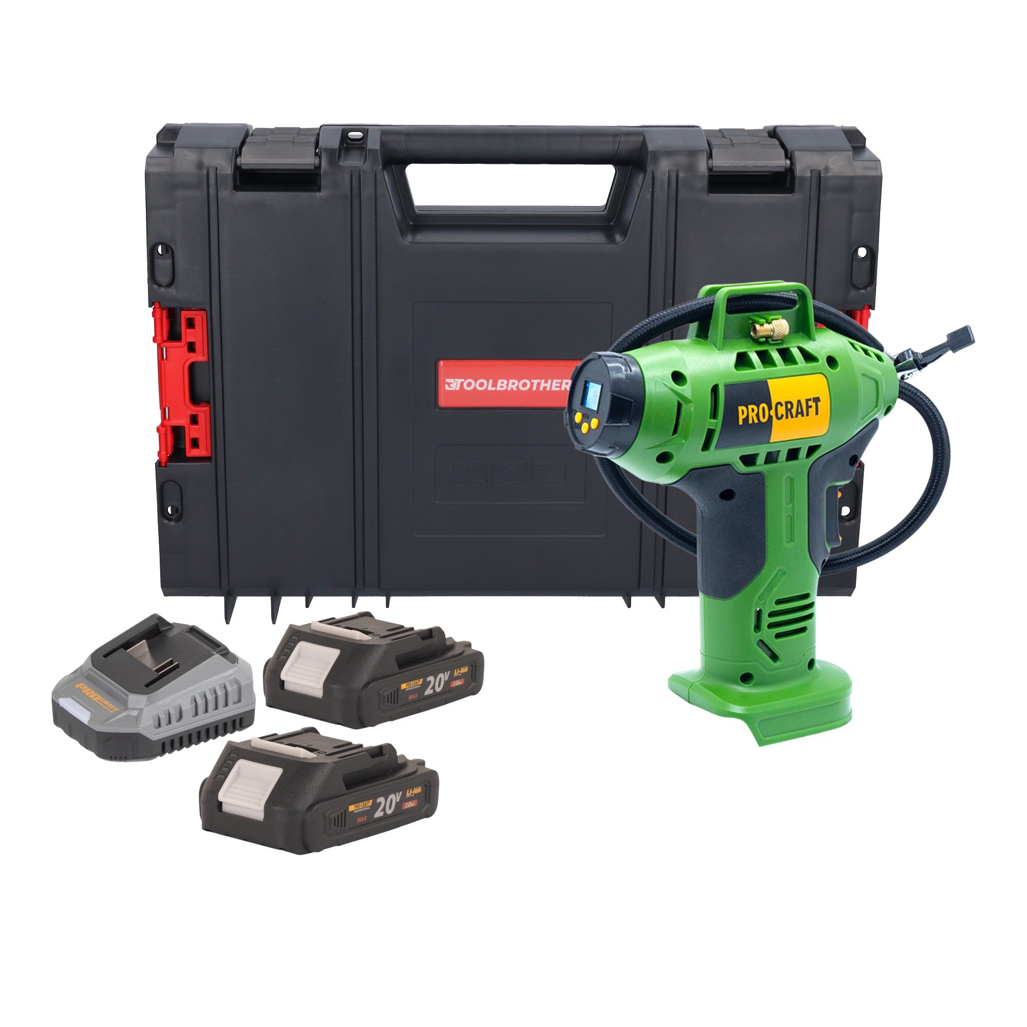 Procraft LK20 Akku Kompressor 20 V 11 bar + 2x Akku 2,0 Ah + Ladegerät + RHINO Toolcase