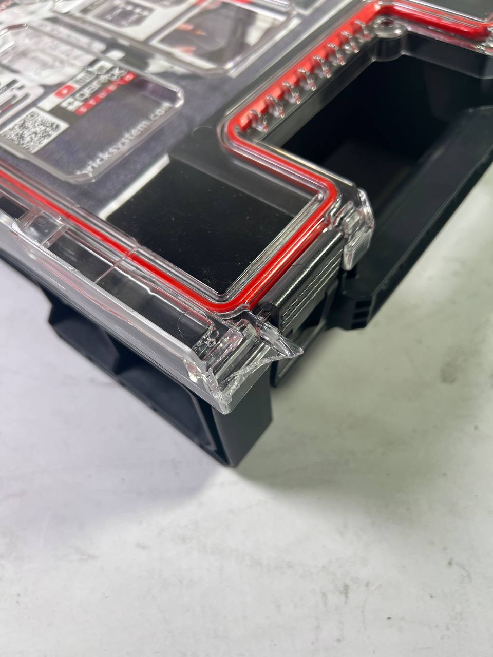 Qbrick System ONE Organizer M Plus est un modèle supérieur de l'organiseur M de la gamme d'organiseurs modulaires ONE, qui peuvent être combinés dans de nombreuses configurations. L'organiseur M Plus est doté du système breveté Easy Access qui, grâce à des éléments de connexion spéciaux, permet d'accéder facilement à chaque module sans avoir à le détacher, ce qui améliore considérablement l'ergonomie de travail. La version MFI de cet organiseur comprend 3 doubles inserts en mousse qui, après avoir découpé les trous correspondants, protègent parfaitement les outils à main et les outils électriques qui y sont placés. En outre, le joint intégré dans le couvercle en polycarbonate résistant aux chocs offre une protection totale contre la pénétration d'eau et de poussière.