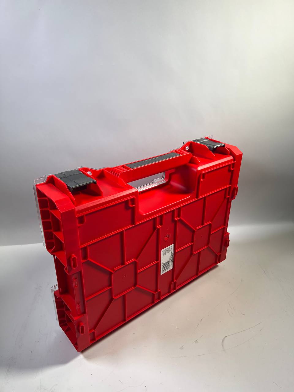 RED ULTRA HD est une édition spéciale de produits Qbrick System PRO en plastique ultra-résistant, qui se caractérise par une résistance exceptionnelle aux dommages mécaniques. Les tests d'impact effectués confirment sa durabilité exceptionnelle, même dans des conditions inférieures à 0 C. Qbrick System PRO Organizer 300 est le plus grand modèle d'organiseur de la ligne PRO. En plus des solutions connues des autres modèles, comme le système breveté Easy Access, un joint dans le couvercle, un couvercle en polycarbonate super solide, des connecteurs latéraux et des fermetures frontales en polyamide et une poignée solide, il offre un corps plus profond, ce qui le rend plus compact. Il est équipé de 8 seaux de tailles différentes, dont deux seaux longs pour le rangement de longs accessoires d'atelier.