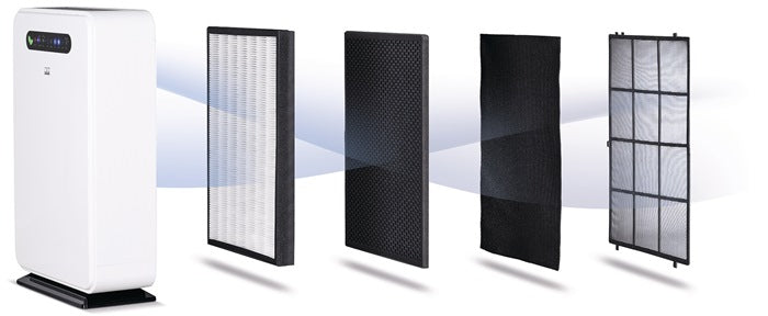 mobile · meilleur air ambiant · est utilisé lorsqu'une qualité d'air maximale est requise · les substances étrangères telles que les allergènes, les moisissures, les poussières fines, la fumée, les bactéries et les virus sont éliminées de manière fiable de l'air ambiant à l'aide du système de filtre HEPA à 4 niveaux · le capteur de qualité de l'air intégré détermine la pollution de l'air ambiant et affiche la qualité actuelle sur l'écran · convient aux pièces de 15 m² à 50 m² · filtre HEPA H13 · générateur d'anions intégré · affichage pour afficher la qualité de l'air · fonction minuterie · 3 niveaux de ventilation · redémarrage automatique après une panne de courant · fonction veille pour un fonctionnement silencieux, y compris l'extinction de l'éclairage de l'écran · indicateur de changement de filtre · couleur blanc, similaire. RAL9003