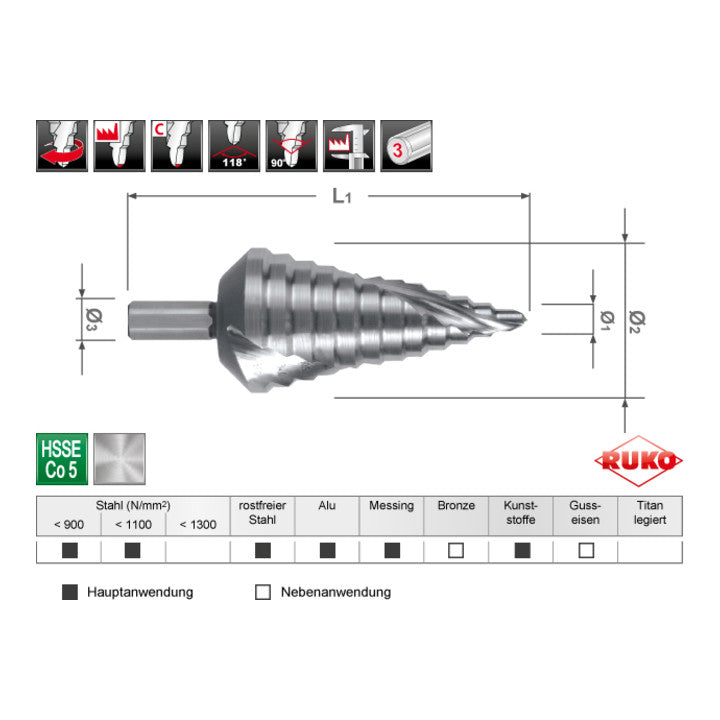 RUKO Foret étagé plage de perçage 6 - 37 mm ( 4000601725 )