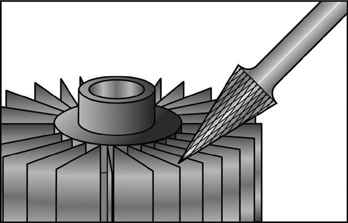 Fraise sur tige SKM D. 10 mm long. tête 20 mm D. tige 6 mm