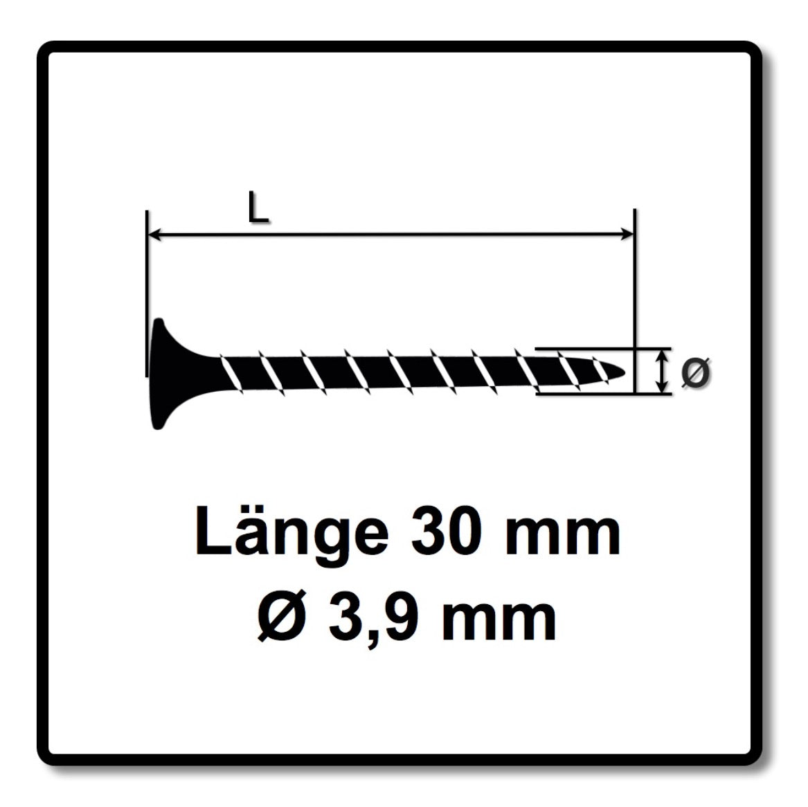 - 2000x vis pour chargeur Technofast HBGF3930TE 3,9 x 30 gros filetage