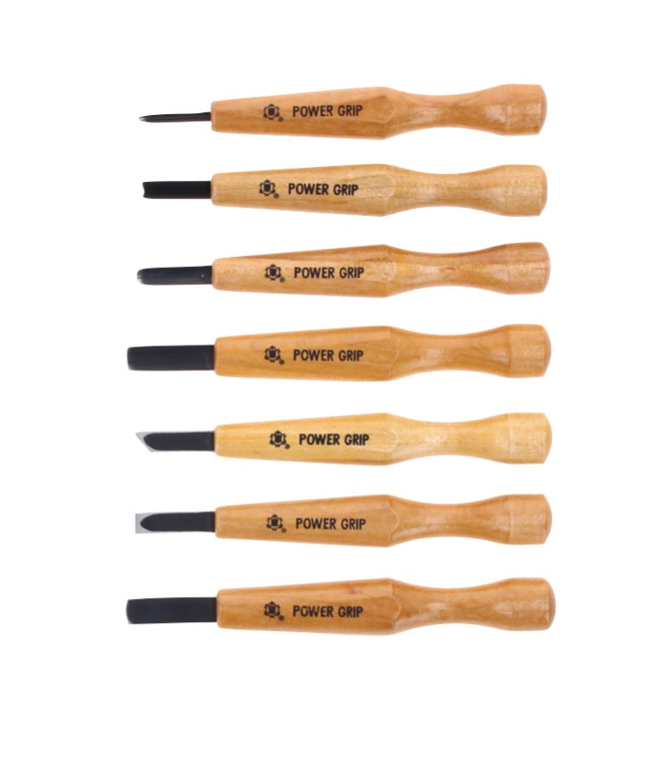 Shogun CHOKOKUTO Power Grip Couteau pour sculpture du bois, Set d'outils de sculpture à encoche / de sculpture pour décoration 7 pcs. - fabriqué au Japon ( PG-7 )
