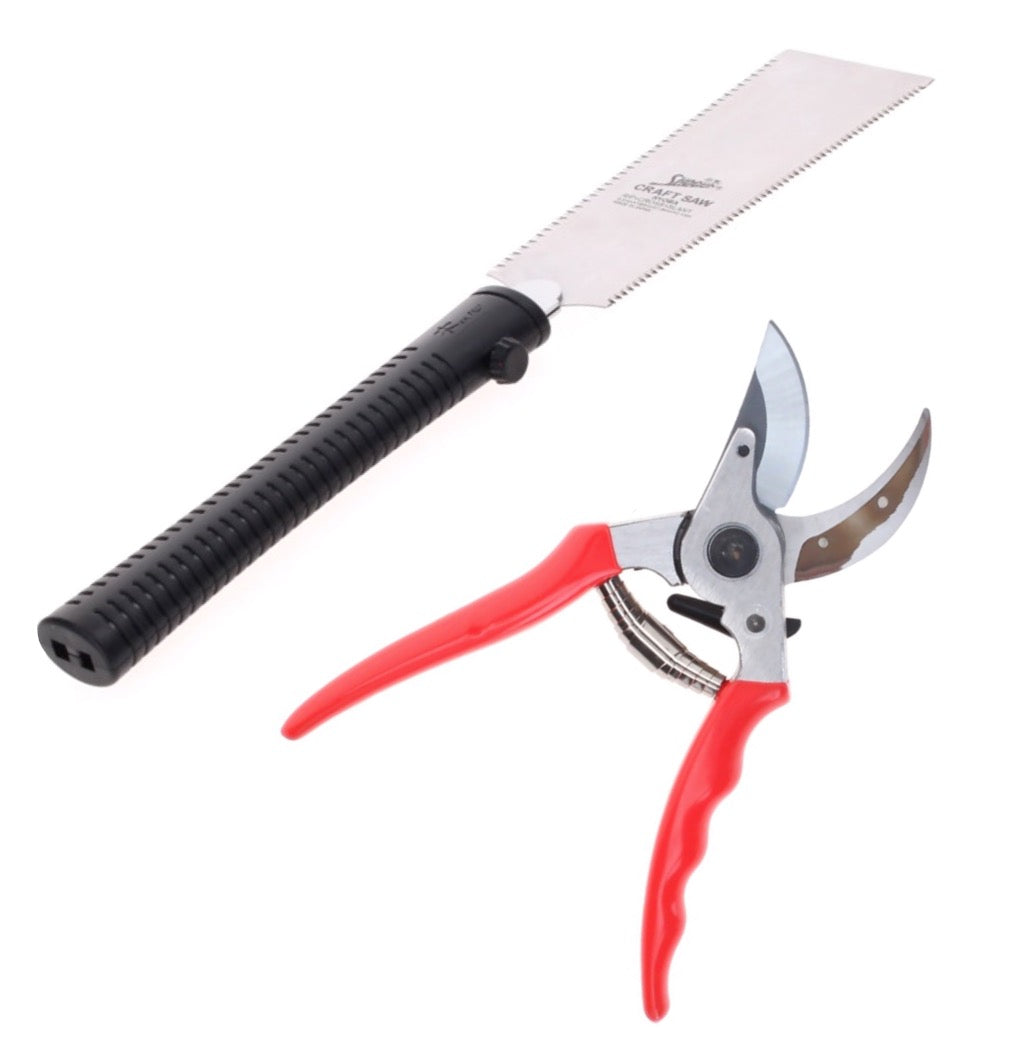 Shogun Sécateur / Sécateur à branche / Sécateur à rosier ( 355 ) + 1x Lame de scie à bois universelle Shogun RYOBA Japan ( M-180R ) - fabriquée au Japon
