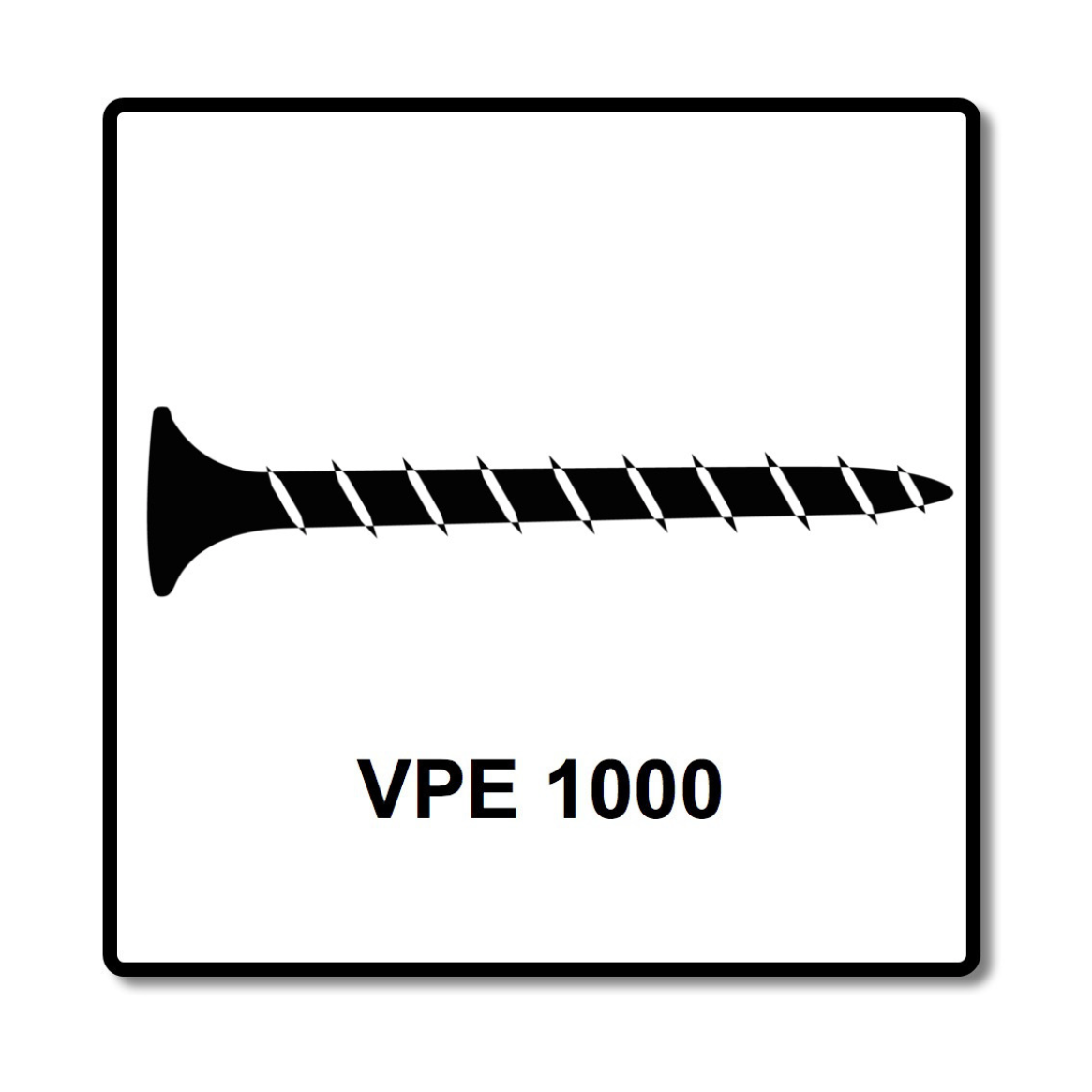 - 1000x SPAX GIX-B Vis pour cloison sèche 3,9 x 45 mm - filetage épais - filetage total - tête trompette - cruciforme H2 - pointe aiguille - magazinée - phosphatée - noire (1891170390356)
