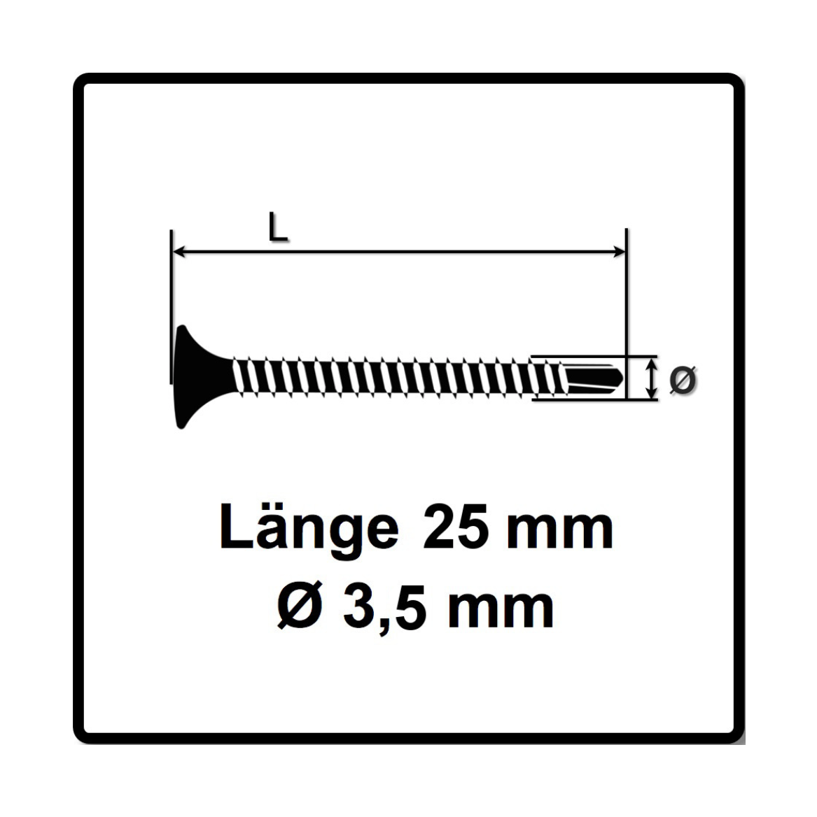 - 1000x Vis pour cloison sèche SPAX GIX-D 3,5 x 25 mm - Filetage total - Tête trompette - Cruciforme H2 - Pointe de perçage - Magazinée - Phosphatée (1991170350256)