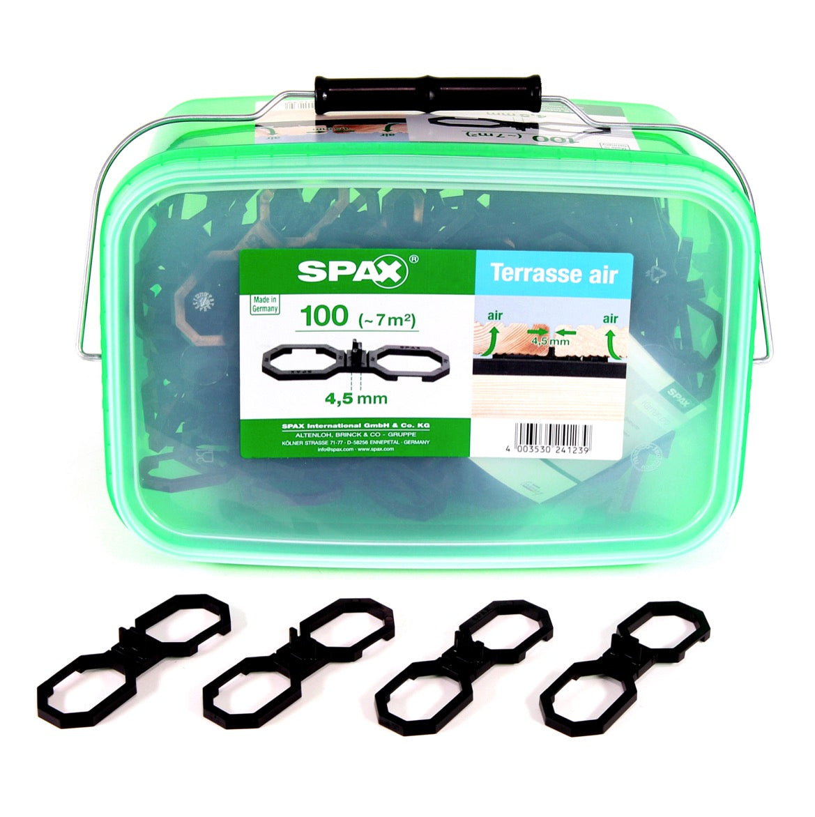 SPAX Terasse Air Espaceurs 4,5mm Ventilation pour planches de bois Terasse L en coffret à anse 100 pcs. (5009422545009)
