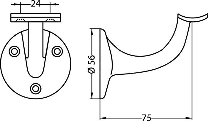 selon DIN 18040 - support bombé - fonte d'aluminium - distance au mur 75 mm - plaque murale 56 mm Ø - avec trous de vis encastrés - certifié TÜV - sans matériel de fixation