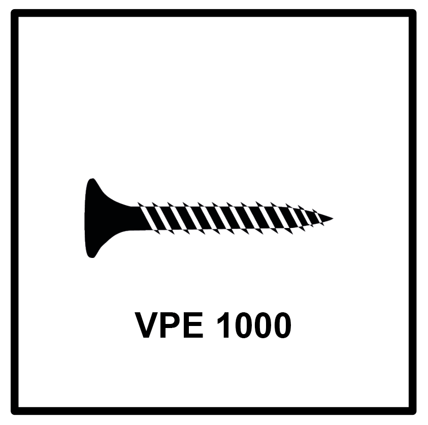 Les vis pour cloison sèche à filetage fin de Technofast sont idéales pour une utilisation dans la construction de cloisons sèches et convainquent par leur texture phosphatée grise.