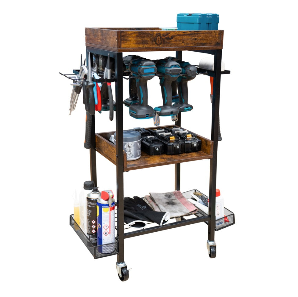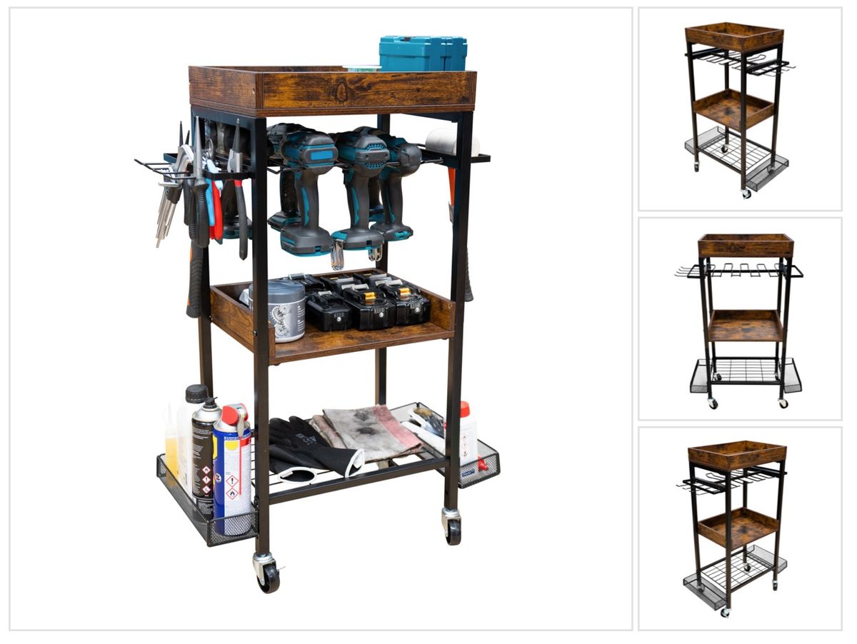 Toolbrothers Chariot d'atelier pour outils électriques et manuels en métal 86 x 45 x 30 cm ( L x l x P ) Roulettes de transport avec freins