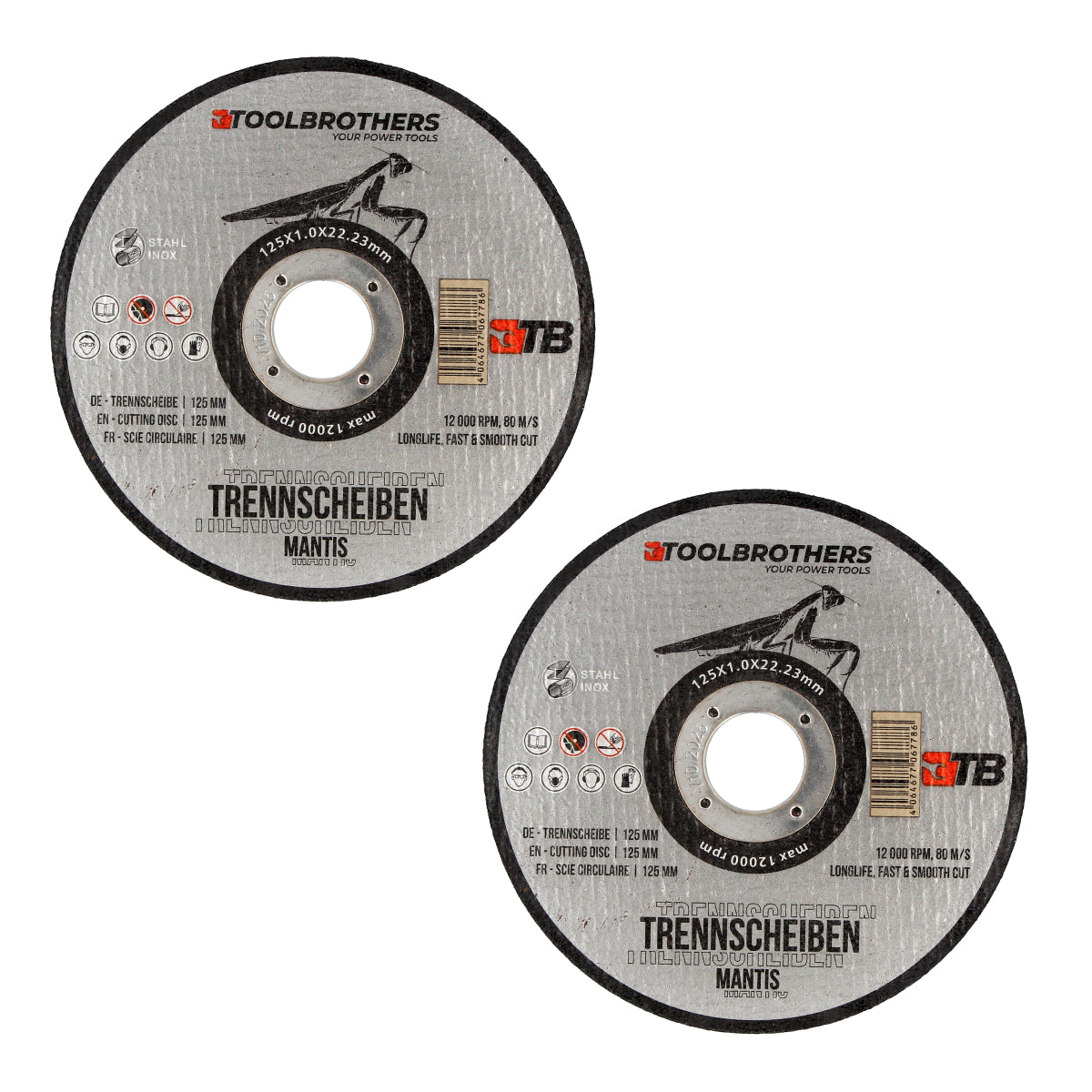 Toolbrothers MANTIS set de disques à tronçonner de qualité professionnelle 2 paquets de 50 pièces, 125 x 22,23 x 1 mm pour le travail du métal, de l'acier, de l'inox / INOX pour meuleuses d'angle