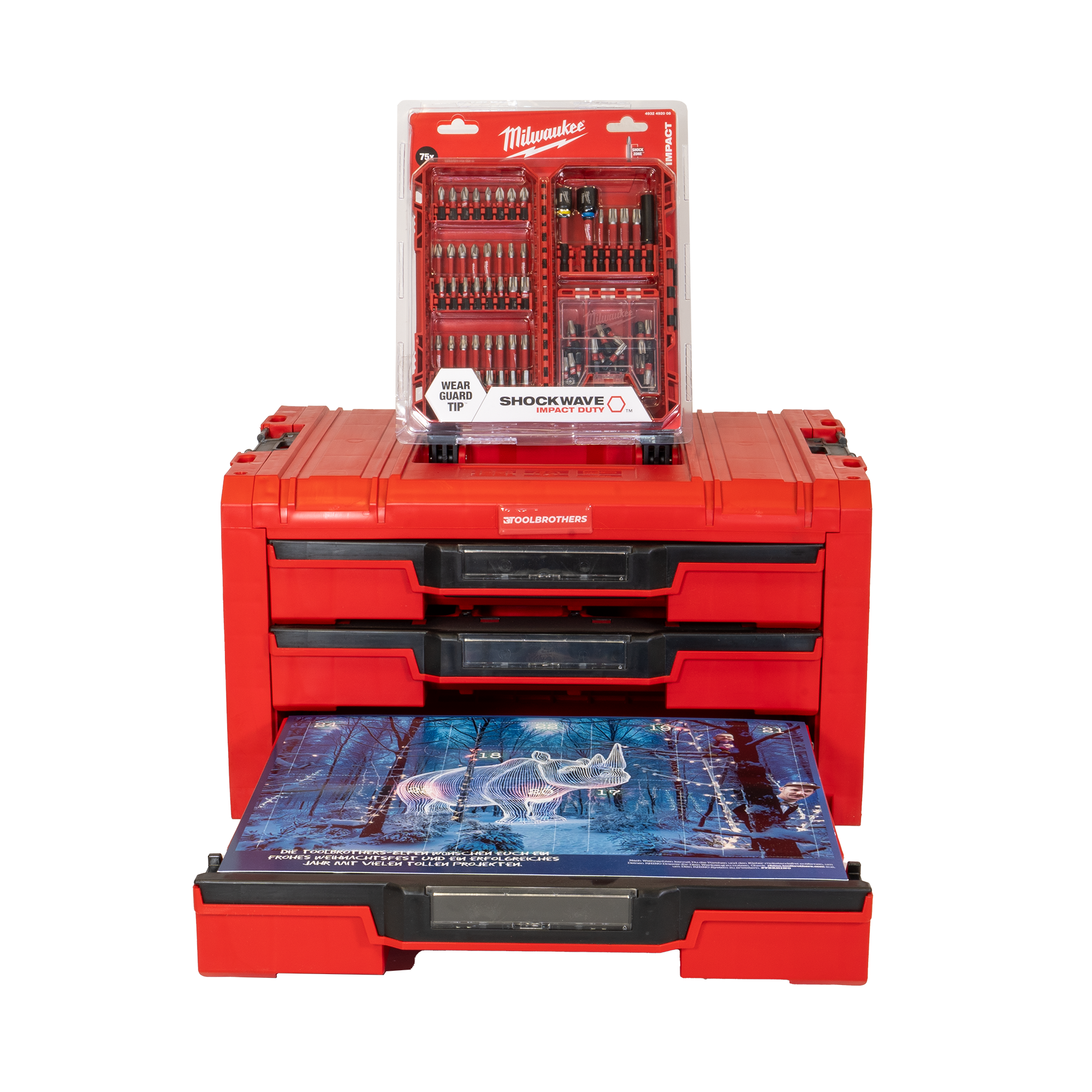 Kit d'embouts Milwaukee (75 pcs.) : des embouts solides pour tes projets de bricolage : Un en-cas de qualité3x bons d'achat pour l'Outlet (30Euro au total) : Pour encore plus de bonnes affaires en matière d'outilsArticles de fans Toolbrothers limités : Goodies pour la TB-FamilyUne petite surprise () : Pour que tu aies toujours TB dans ton cœurRHINO ULTRA L Drawer Expert (valeur : 69Euro) : Le calendrier de l'Avent lui-même comme boîte à outils