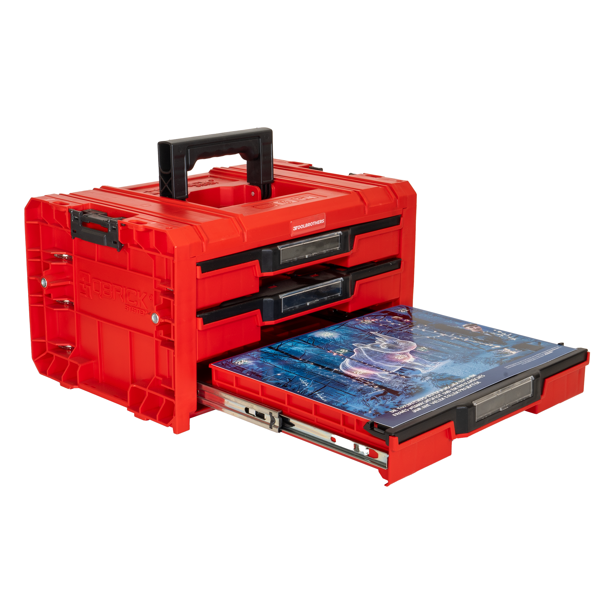 La particularité de notre calendrier de l'Avent est le RHINO Ultra L Drawer Expert, une solide mallette à outils avec trois tiroirs qui fait partie du système de mallettes RHINO. Cela signifie que tu ne reçois pas seulement un calendrier de l'Avent, mais aussi un système ultra résistant et durable qui sert d'atelier mobile. Nos valises RHINO sont parfaitement compatibles et idéales pour les déplacements ou comme solution d'atelier fixe. La stabilité et la polyvalence sont au centre de nos préoccupations, ce qui te permet d'utiliser parfaitement le RHINO Drawer même après la période de l'Avent, que ce soit dans ton garage, ton atelier ou sur un chantier.
