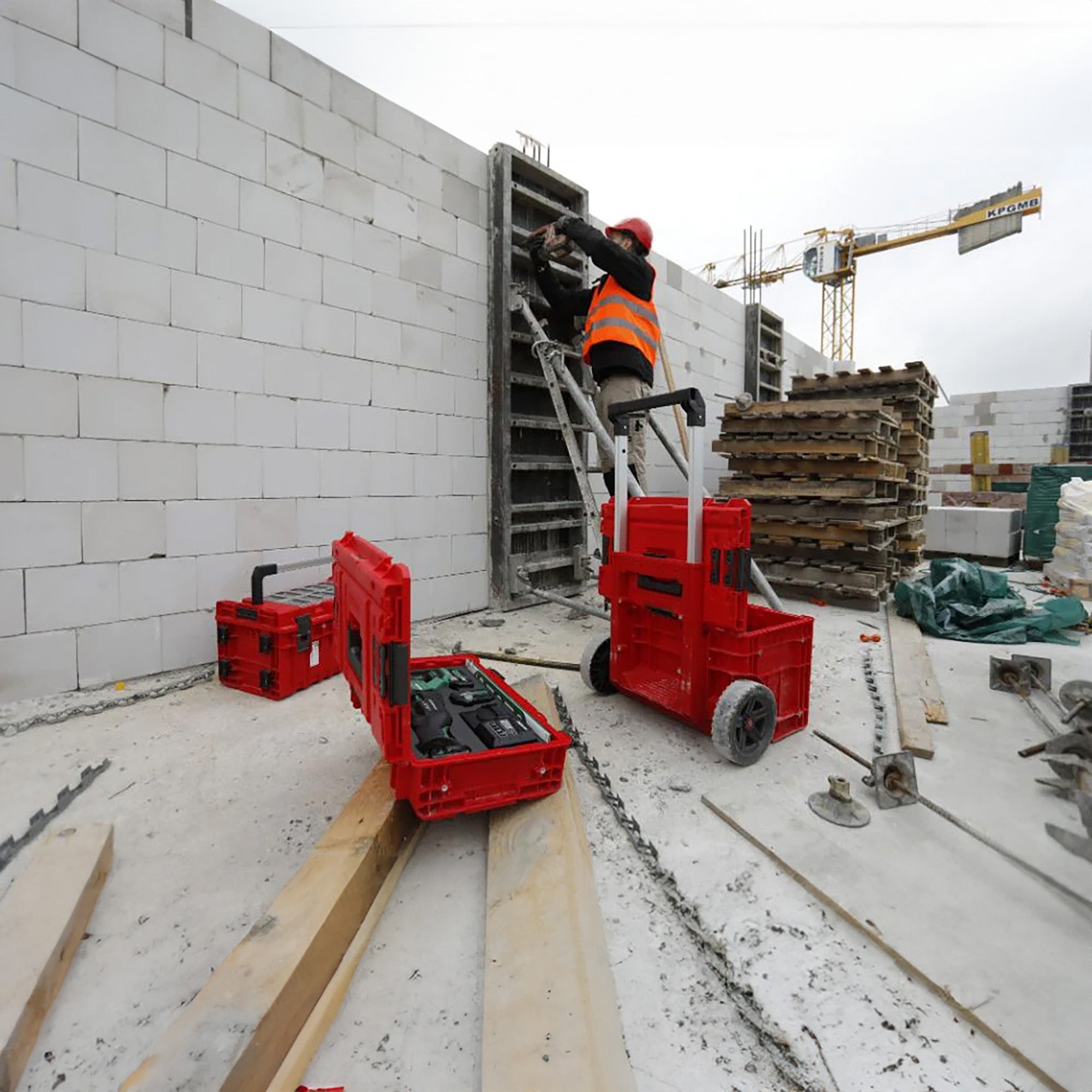 RHINO XXL Cart Plus est le plus grand caisson mobile sur roues du système RHINO. Il combine une solide boîte de transport RHINO avec un chariot à main et constitue ainsi la base de la ligne multimodale XXL. Tu peux donc utiliser le RHINO Cart Plus de manière optimale comme point de départ et, par-dessus, combiner ton système RHINO de la manière dont tu en as besoin pour tes interventions. Le couvercle VARIO+ intégré est équipé de raccords supplémentaires qui permettent une compatibilité descendante. Peuvent être combinées avec le couvercle Vario+ de la ligne XXL les Long Editions de la ligne Slim, toutes les valises de la ligne L et bien sûr toutes les valises de la ligne XXL. Et avec la plaque pratique RHINO Multi Adapter, tu peux aussi combiner facilement la ligne XXL avec la ligne XL. Tu as ainsi ton atelier complet sur roues. La boîte contient 52 litres et possède une poignée télescopique amovible en aluminium et de grandes roues recouvertes de caoutchouc montées sur un axe métallique. Le transport de tes outils est ainsi facilité, même dans des conditions difficiles et sur des surfaces boueuses. La sécurité des outils transportés est en outre assurée par des éléments de fixation solides et des connecteurs latéraux en polyamide résistant. La gamme RHINO XXL est fabriquée en plastique ultra résistant, qui se caractérise par une résistance exceptionnelle aux dommages mécaniques, même à des températures inférieures à 0° - conçue pour résister à toutes les intempéries.