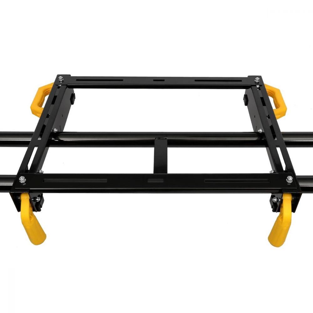 Le support de scie à onglet TM-MS200U de TOUGH MASTER est utile pour tous ceux qui utilisent régulièrement leur scie à onglet sur des chantiers changeants. Il convainc par sa construction en acier robuste et ses ferrures stables, qui garantissent une utilisation fiable et une longue durée de vie. Il est très facile à monter ; tout ce que vous avez à faire est de déplier les pieds du support et de monter la scie et vous êtes prêt à commencer. Ce support de scie à onglet est équipé de bras télescopiques qui, lorsqu'ils sont étendus, permettent de transporter une pièce de jusqu’à 3 mètres de long. Le support est également doté de butées faciles à régler qui assurent des coupes répétitives rapides lors de l'utilisation. De plus, le poids relativement faible de 13,5 kg et les pieds pliables le maintiennent le support de manière compacte et garantissent un transport facile sur le chantier. Ses roulettes réglables en hauteur offrent d'autres fonctions pratiques, car ils peuvent être utilisés pour régler la hauteur de votre pièce en toute sécurité et fiabilité pour des coupes précises et exactes. Une autre chose intéressante à noter est que le support de scie à onglets comporte des supports de montage avec des poignées à dégagement rapide qui permettent une fixation et un retrait faciles et rapides de la scie à onglets. Ce support de scie à onglet est compatible avec la plupart des scies à onglet et les leviers à dégagement rapide intégrés permettent des réglages rapides. Donc, si vous avez besoin d'un support de scie à onglet pour couper des plinthes ou des articles similaires, ce support de scie à onglet TOUGH MASTER est un excellent choix.