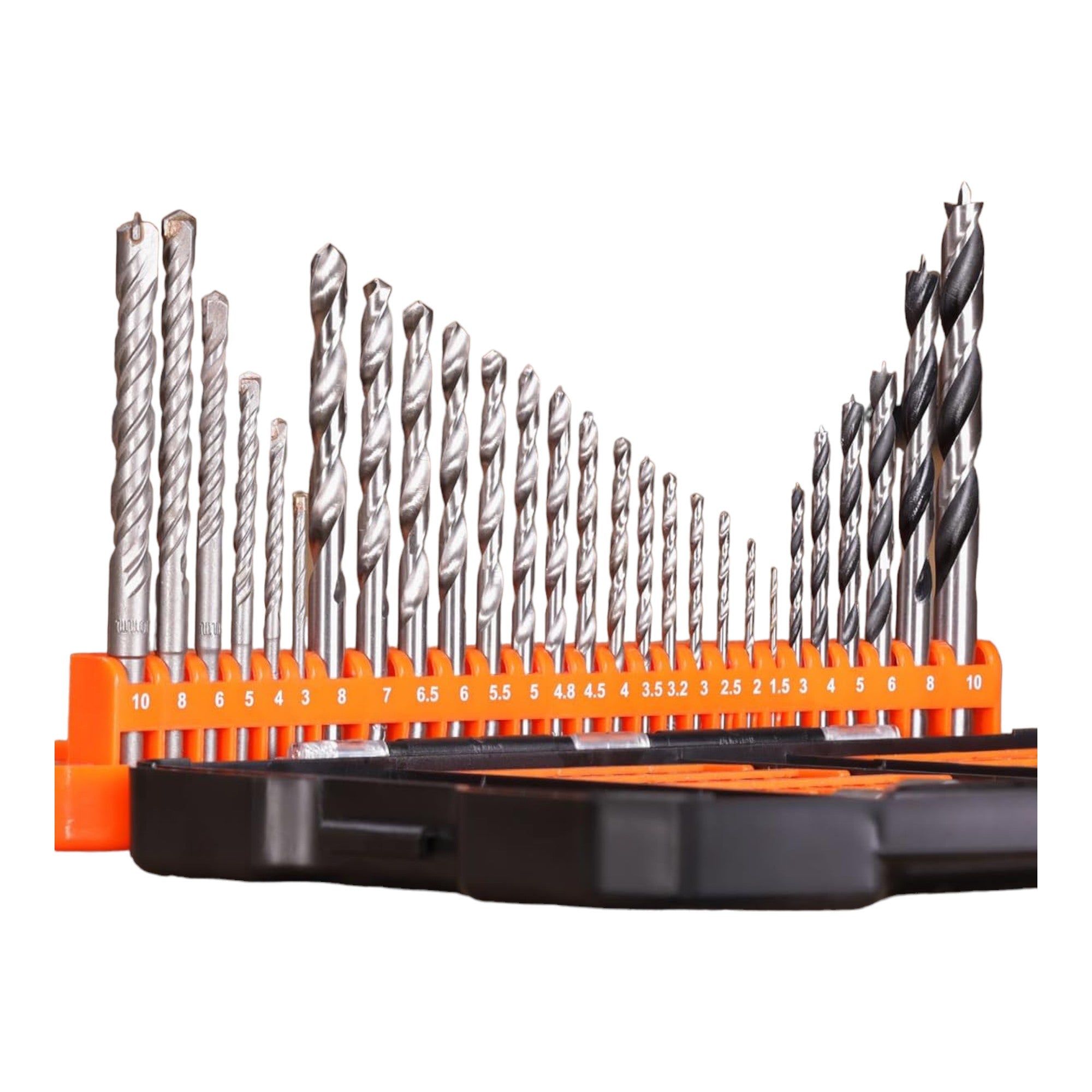 - 15x mèches acier HSS ( 1,5 / 2 / 2,5 / 3 / 3,2 / 3,5 / 4 / 4,5 / 4,8 / 5 / 5,5 / 6 / 6,5 / 7 / 8 mm )