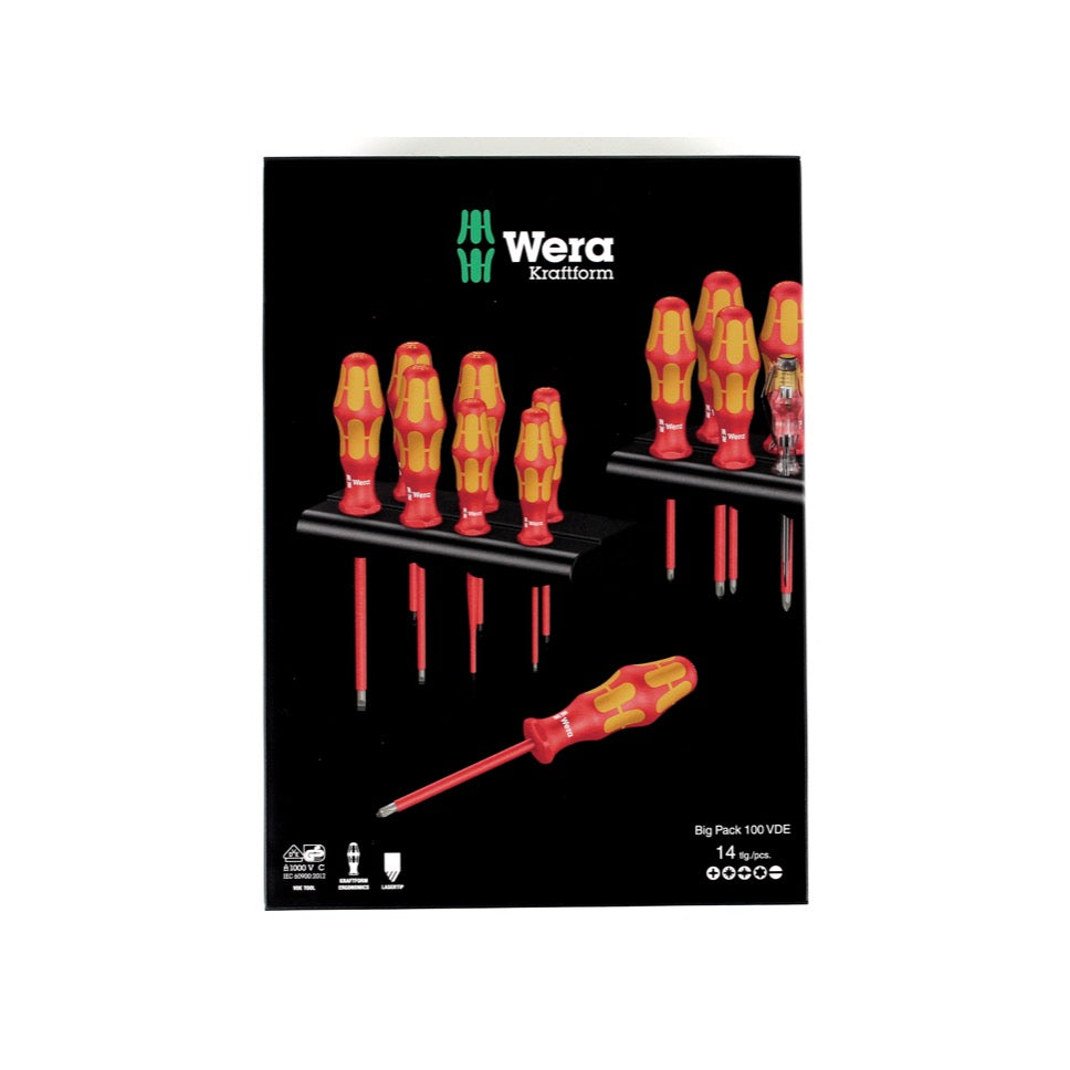 - 1x Wera Kraftform Big Pack 100 VDE Set de tournevis, 14 pcs.