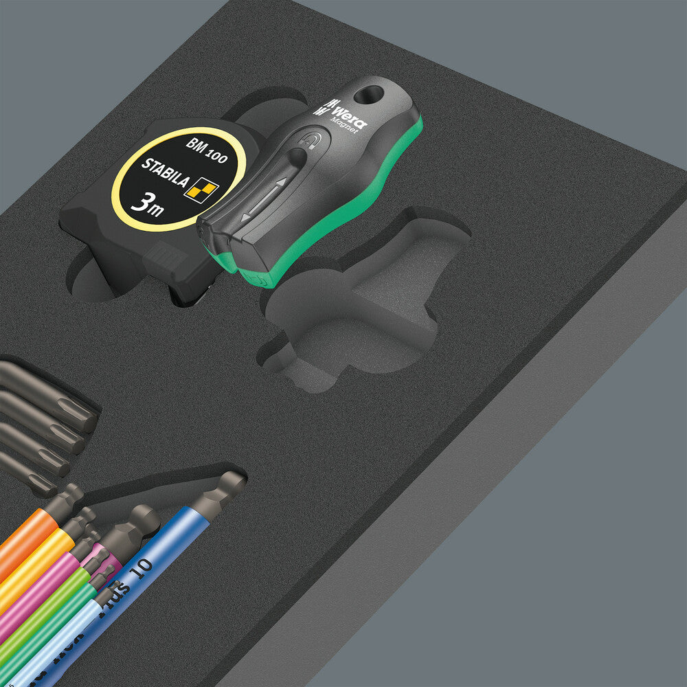 - Contenu : Jeu de clés mâles coudées Hex-Plus Multicolour 950/9, métrique, BlackLaser 9 pièces Jeu de clés mâles coudées 967/9 TX/XL Multicolour, longues, 9 pièces Aimant 9500 SB Stabila® Mètre à ruban de poche BM 100, 3 m