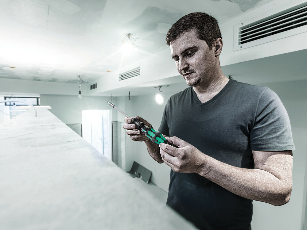 avec magasin d'embouts intégré - logement d'embouts magnétique - manche Kraftform multicomposant - lame hexagonale - embouts avec système de repérage par couleur - convient pour embouts de 6,3 mm (1/4") - entraînement hexagonal extérieur C 6,3 - contenu 1 porte-embouts avec magasin d'embouts intégré et manche Kraftform multicomposant 1 embout (avec zone BiTorsion dure) pour vis avec empreinte cruciforme (PH), gr. 1 / 2 1 embout (avec zone BiTorsion dure) pour vis à empreinte cruciforme (PZD), taille 2 1 embout (avec zone BiTorsion dure) pour vis à profil TORX® intérieur taille T 20 / 25 1 embout pour vis à fente 5,5 mm